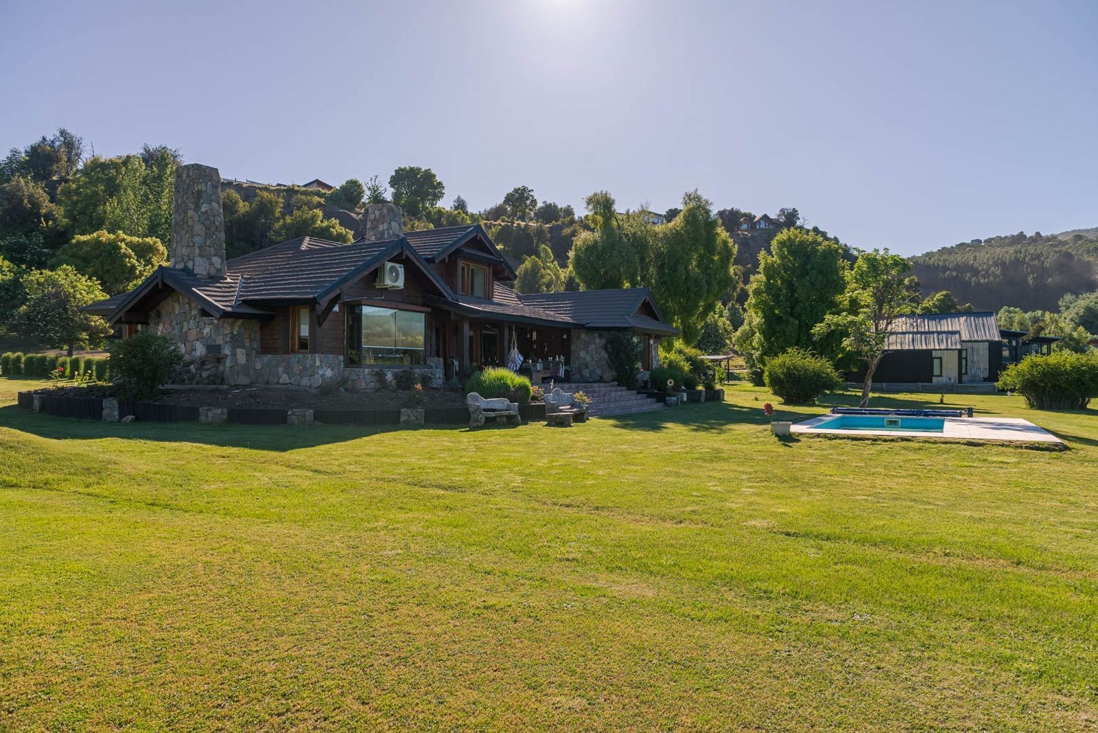Especatacular casa en Barrio Cerrado Club de Campo Peñon de Lolog. La casa cuenta con Hall de Acceso, de un lado la Cocina de concepto abierto con isla y parrilla interna incorporada, comedor, lavadero, toilette, y del otro lado del hall tenemos un amplio living con pisos de madera y hogar a leña, todos los ambientes con impresionantes vistas. Tambien en planta baja cuenta con escritorio, y amplio lavadero con acceso desde la cochera para dos autos, el cual cuenta con dependencia de servicio completa con dormitorio y baño, luego nos encontramos con un dormitorio en suite con vestidor, pasillo distribuidor a dos dormitorios con un baño completo. En la planta alta cuenta con un ambiente extra que puede ser destinado a office, cuarto dormitorio, playroom, etc. En el exterior de la casa nos encontramos con una galeria techada, amplio jardin y pileta. Calefaccion con caldera por radiadores. Todos los servicios, luz, gas y agua. ACEPTA EN PARTE DE PAGO PROPIEDAD DE MENOR VALOR EN SAN MARTIN DE LOS ANDES.